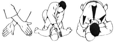 A technique to choke the opponent’s neck region by crossing the wrists from the front gripping his left side-collar with four fingers of the left hand inside and the right side-collar with right thumb inside, pulling the left hand and pushing the right hand.