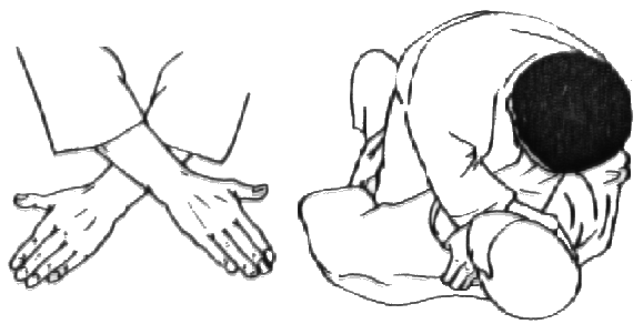 A technique to choke the opponent’s neck region by crossing the wrists from the front, gripping his side-collars with both thumbs inside and pushing both hands.