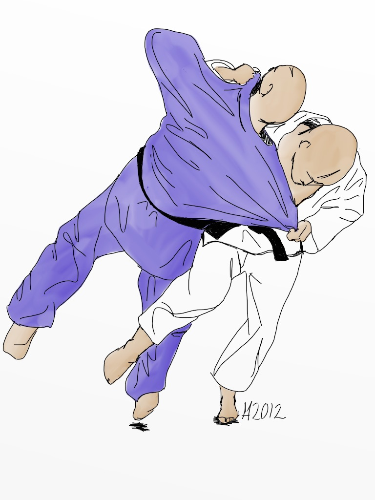 A technique to reap the opponent’s right leg from the outside with the right leg and throw him down by breaking his balance backward.