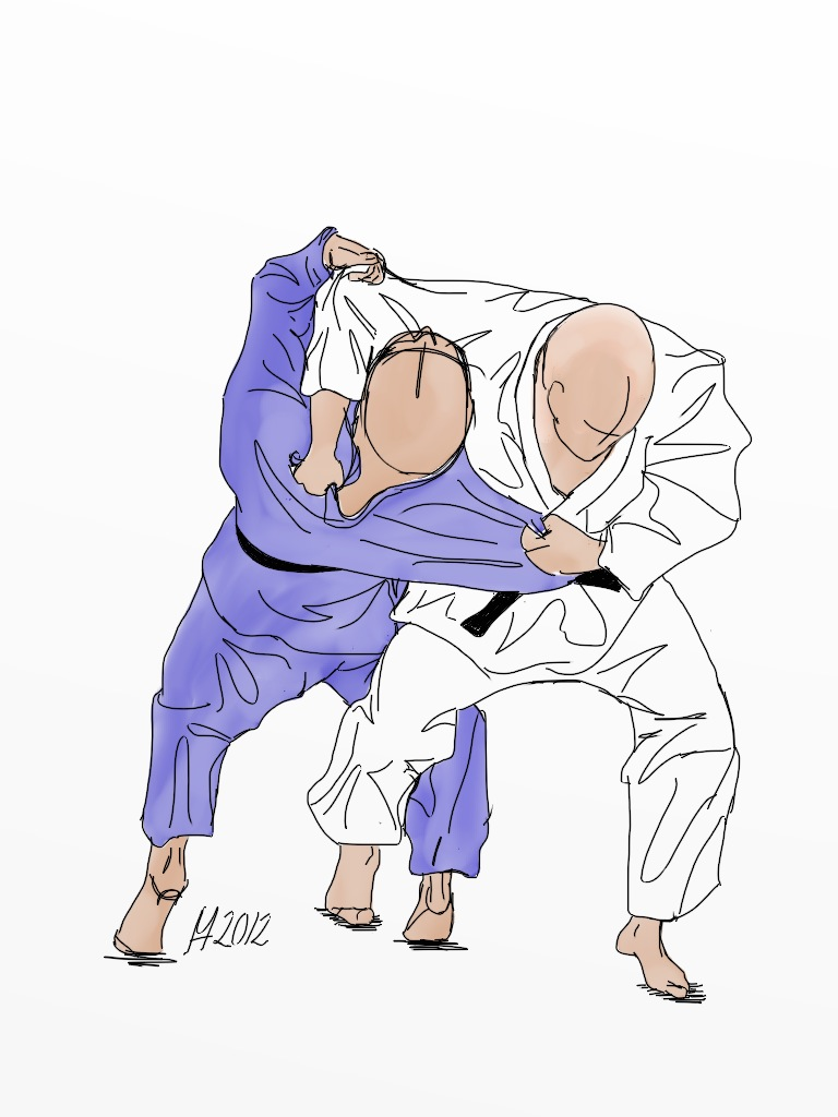 A technique to throw down the opponent vertically by breaking his balance backward and sliding down the right leg on the back of his right thigh.