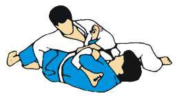 A technique to hold down the opponent’s upper body with the right leg by holding his right arm with one of the arms or both from the right side of the opponent lying on his back and stretching the left leg backward.