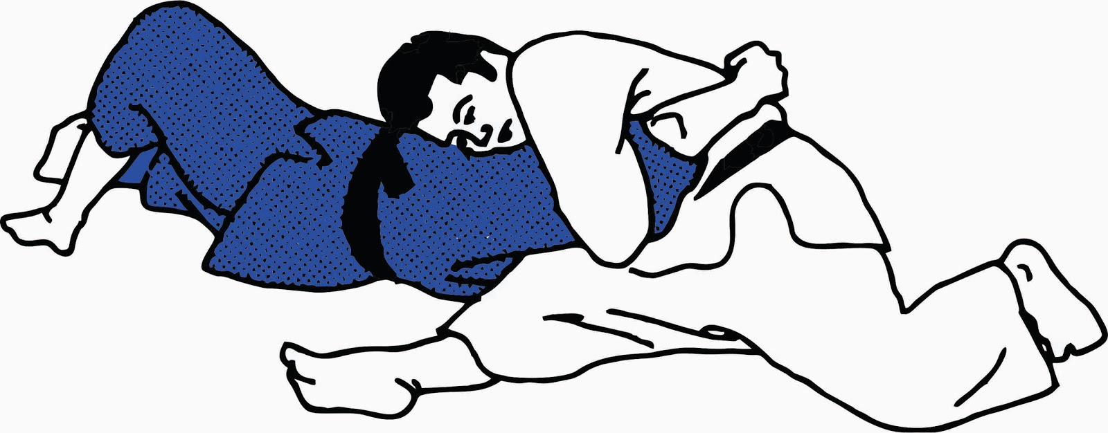 A technique to hold down the opponent’s upper body under the left side of the chest region by putting the left hip on the right side of his body from the right side of the opponent lying on his back, holding his right arm in the right arm and holding his upper body in the left arm.