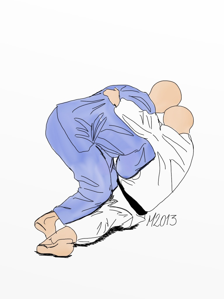 A technique to pull and throw down the opponent by breaking his balance rightward and laying down the body onto the left side while sliding the left leg toward the outside of his right foot .