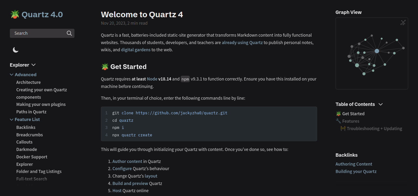 Quartz is a fast, batteries-included static-site generator that transforms Markdown content into fully functional websites. Thousands of students, developers, and teachers are already using Quartz to publish personal notes, wikis, and digital gardens to the web.